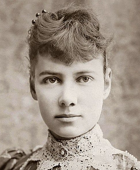 Elizabeth Cochran Seaman aka Nellie Bly (1864 – 1922) is best known for pioneering a new style of investigative journalism, famously going undercover in 1887 at an asylum to report on conditions at the facility… In another adventure, she attempted to recreate the famous novel "Around The World In 80 Days". Not only did she complete it with eight days to spare, she made a detour to interview Jules Verne, the original author. She did it in 1889, 9 years after the novel was first published…