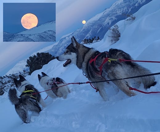 There was a full Moon last night, and according to folklore it has a special name: The Wolf Moon. Dr. Tony Phillips watched it rise from the back of a dog sled in California's Eastern Sierra… WOW!