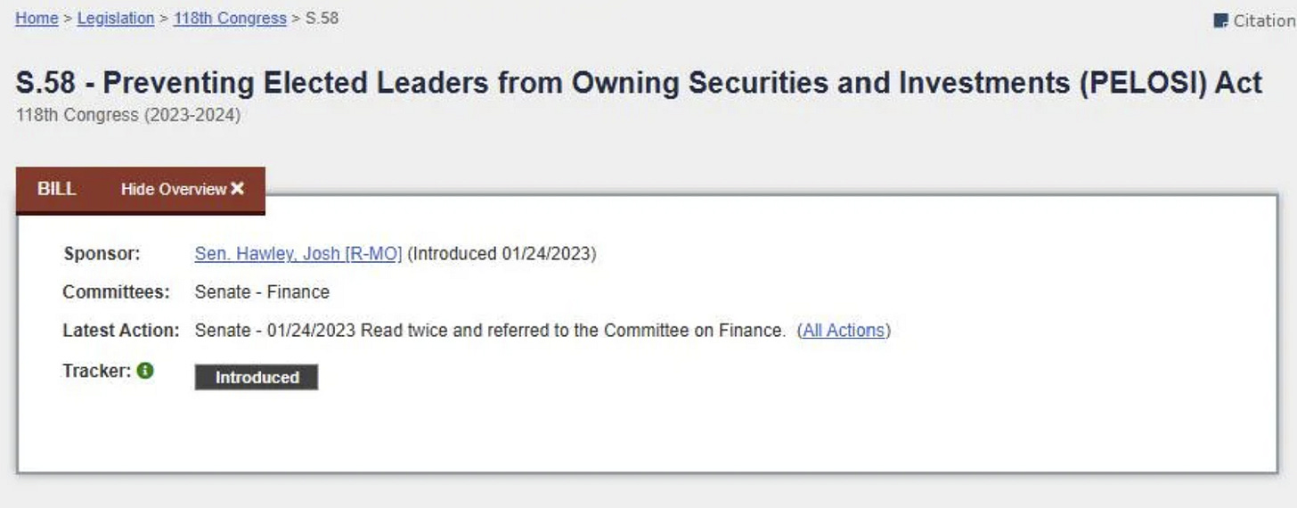 Yesterday, U.S. Senator Josh Hawley (R-Mo.) reintroduced the Preventing Elected Leaders from Owning Securities and Investments (PELOSI) Act, which would ban members of Congress from trading or holding individual stocks. The move comes after President Trump announced he would sign such a bill into law if it crossed his desk.