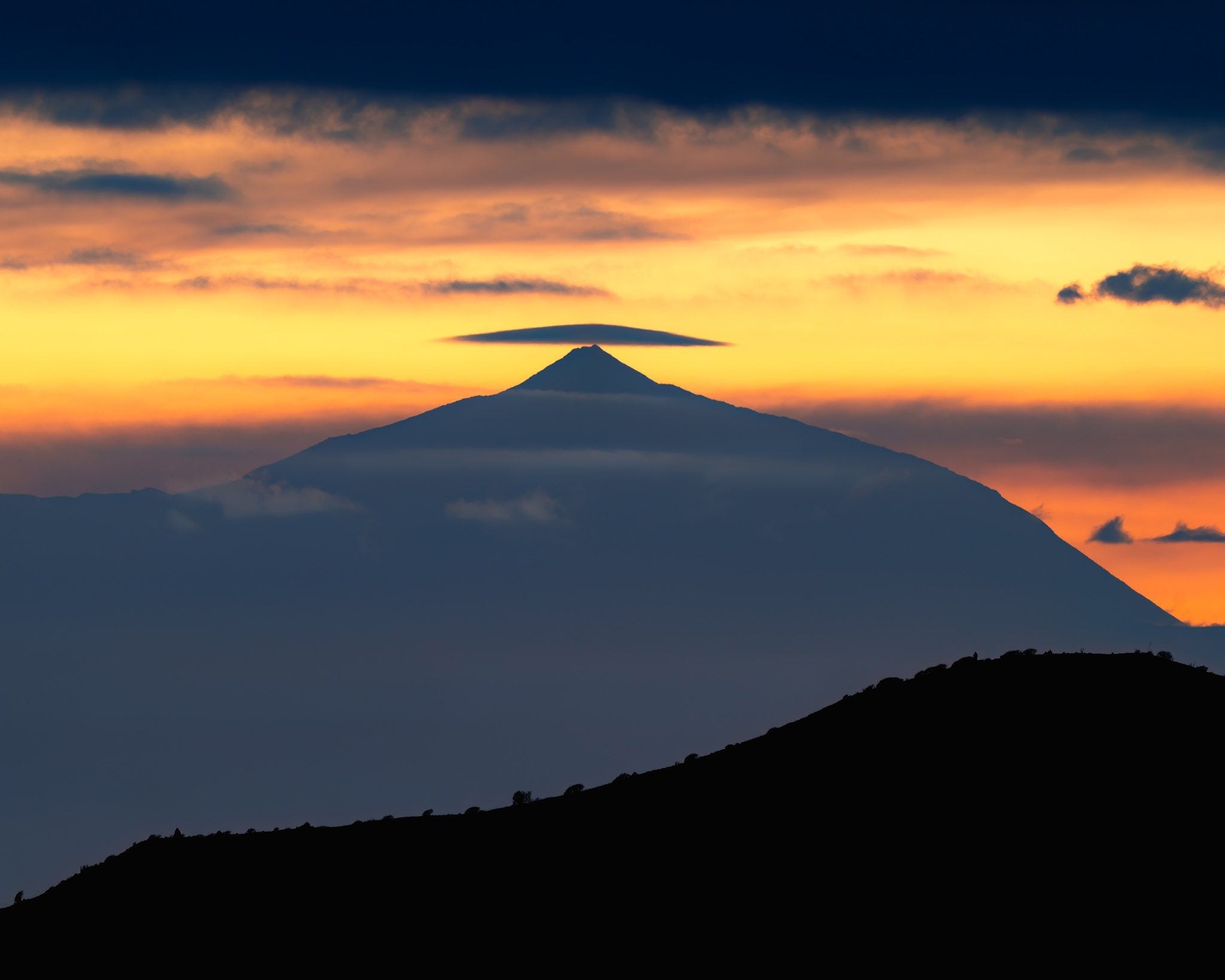 Lenticular cloud over the Teide volcano, Canary Islands, Spain…