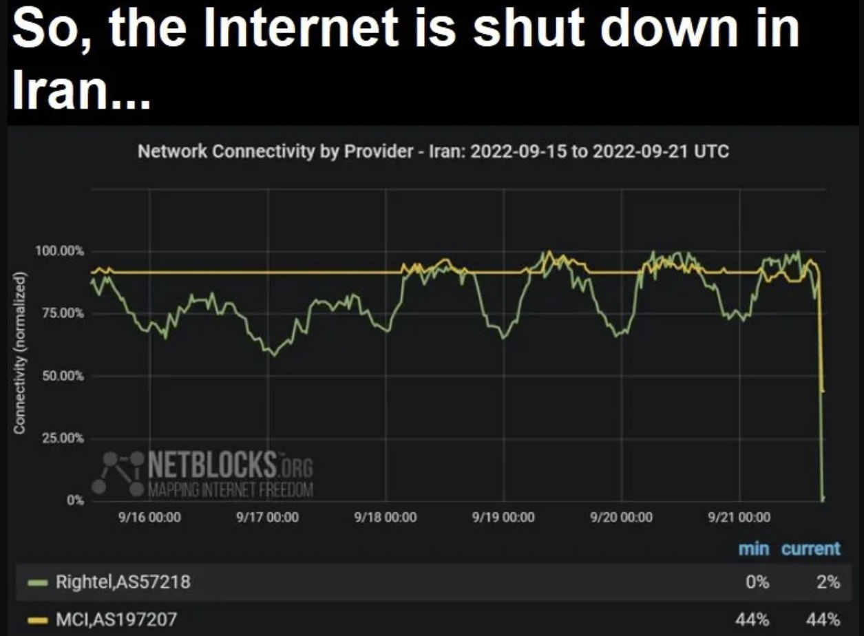 In Iran, the internet has been shut down. The regime probably wants to hide what’s going on right now over there. Dozens have already been killed…