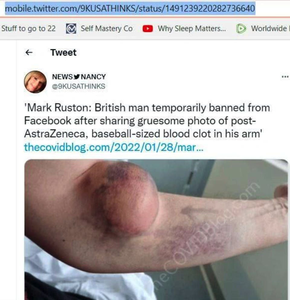 Just another British man temporarily banned from Facebook after sharing gruesome photo of post-AstraZeneca vaccine of baseball-sized BLOOT CLOT in his arm…