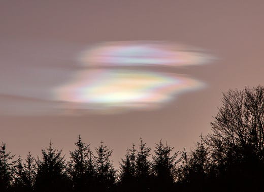 Polar Stratospheric Clouds (PSCs) are supposed to stay inside the Arctic Circle. Last night they broke out and made a rare appearance over Scotland: