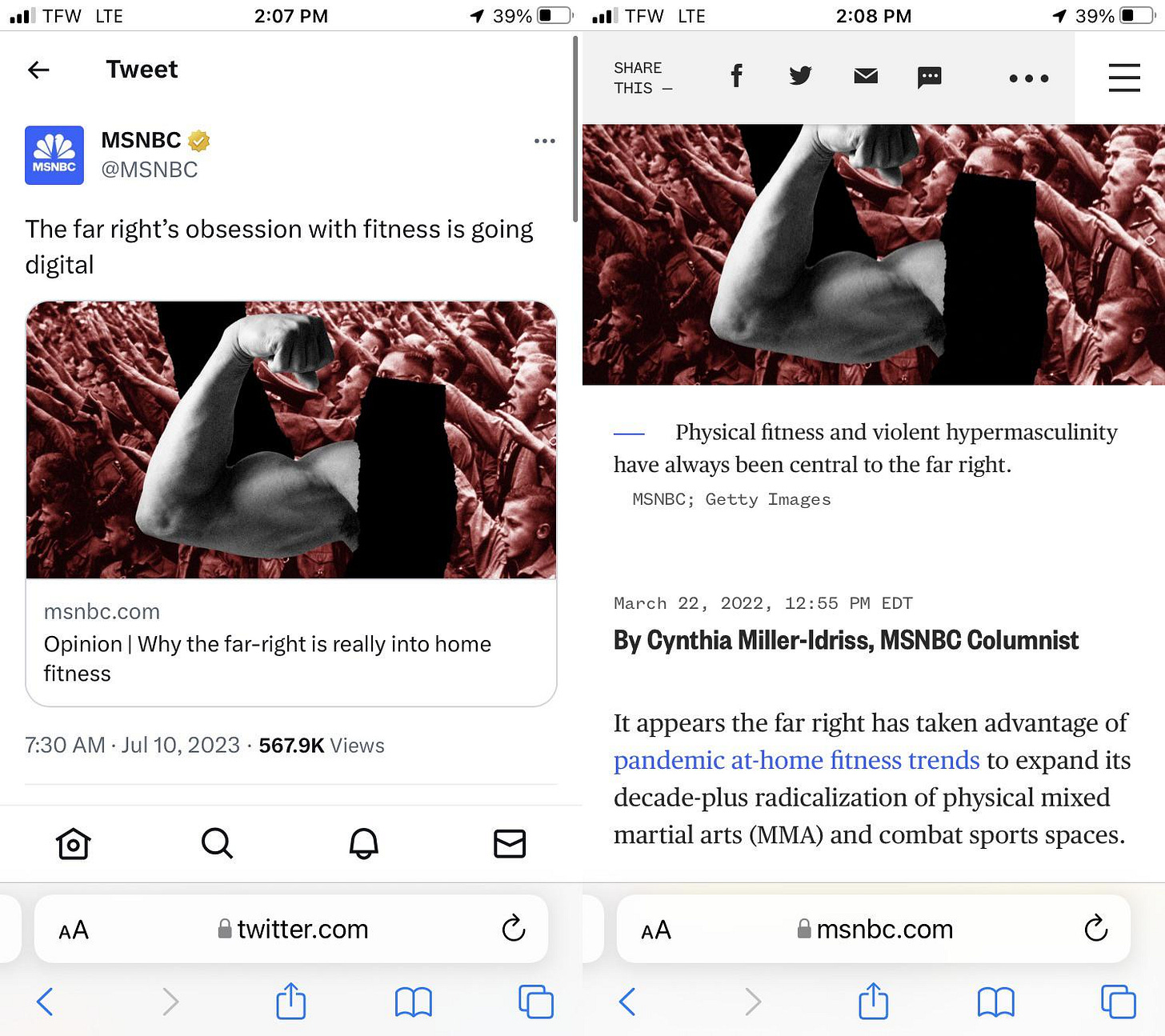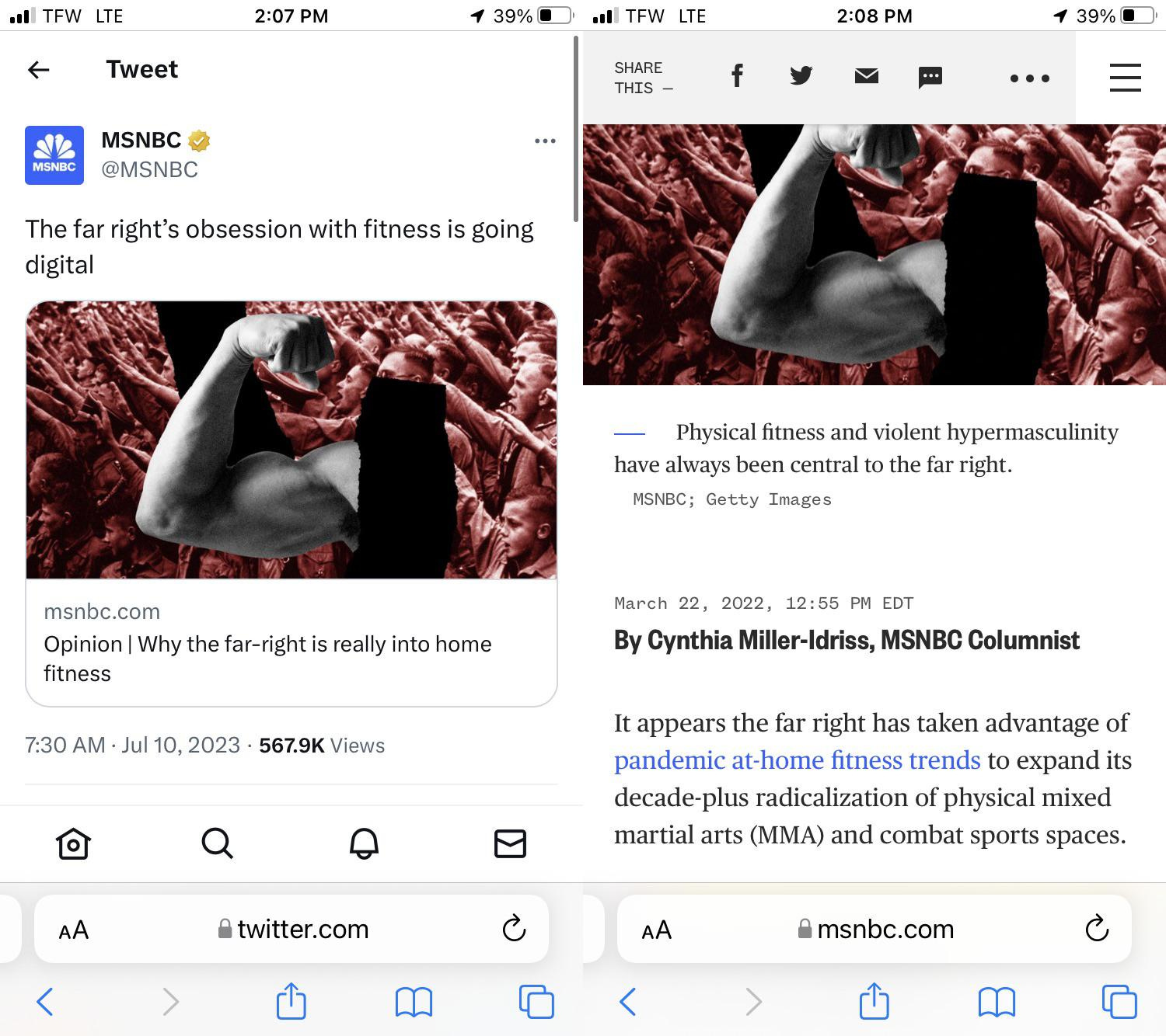 Yes, they are warning about “the far right’s obsession with fitness…”