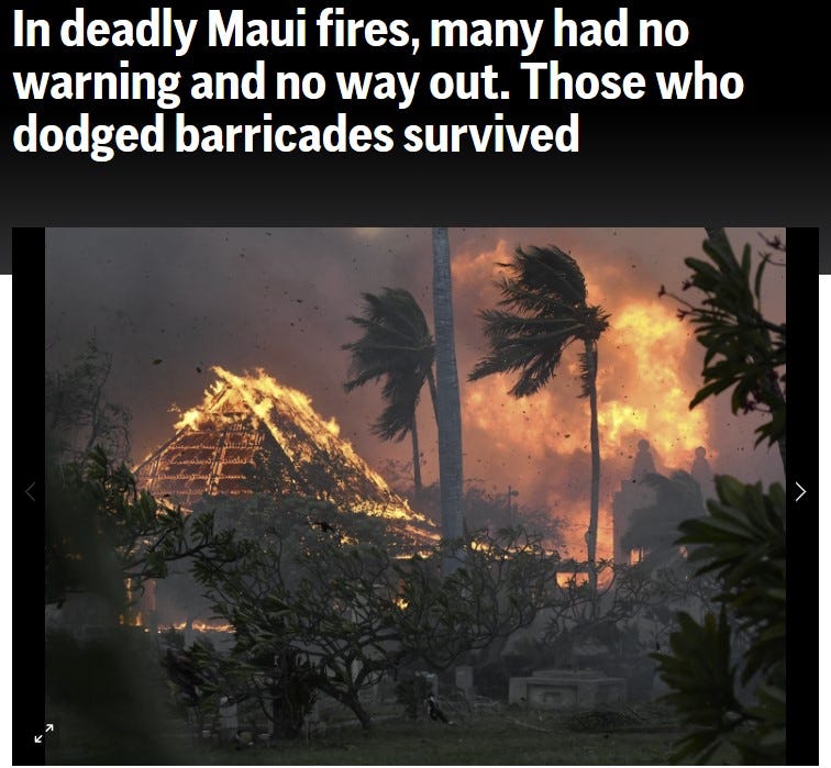 Only those Maui residents who disobeyed barricade survived fires… Yep! during such events you are likely better off following your natural survival instincts…