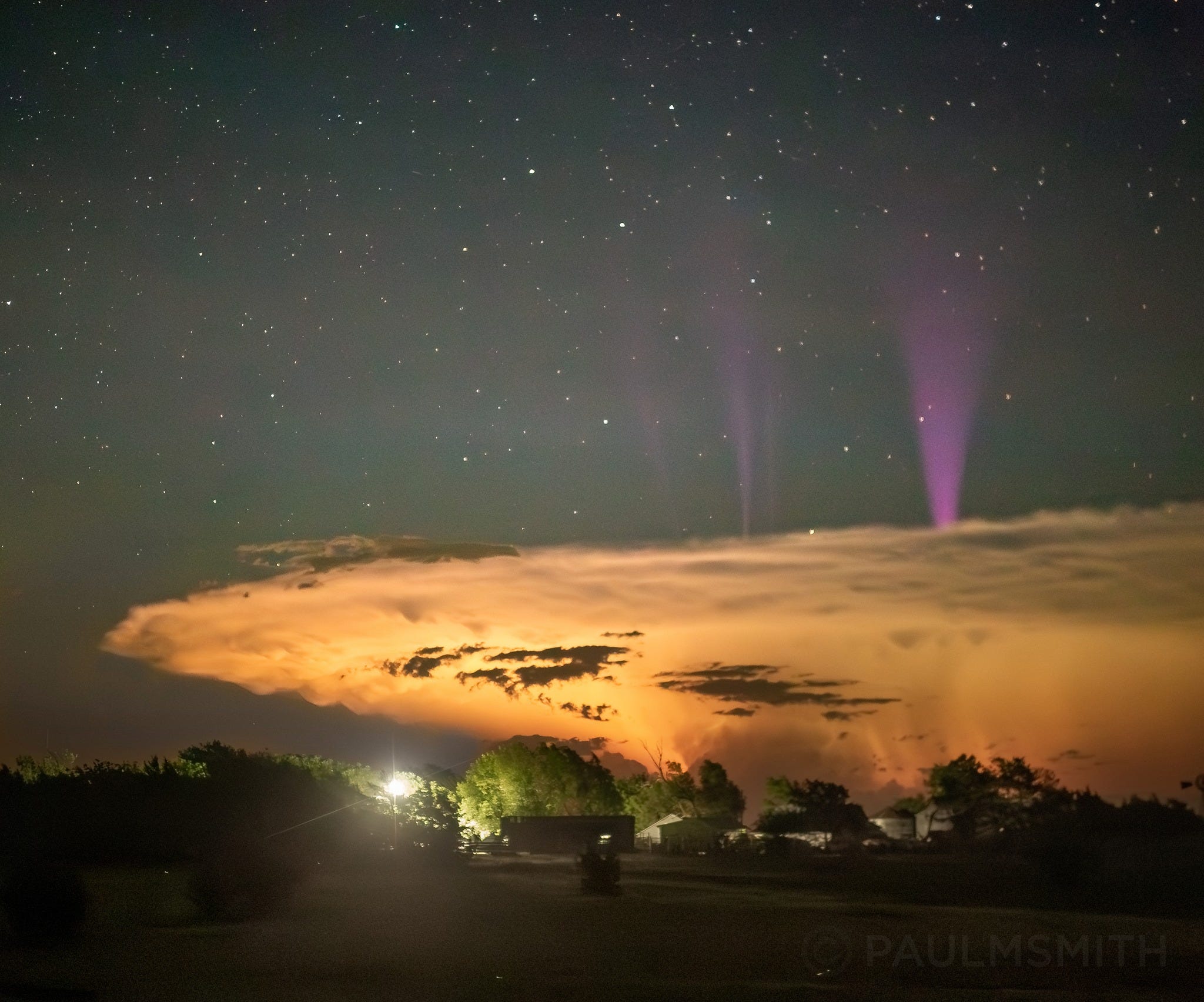 Blue jets are so rare to see that only a handful have ever been captured worldwide from the ground or sky. In this single-image photograph, there are seemingly different morphologies of blue jets. To the right, a giant spotlight-type beam of a jet exits the top of the storm aiming towards space while to the left of it, multiple thinner jets seem to follow electric field lines above storm activity…