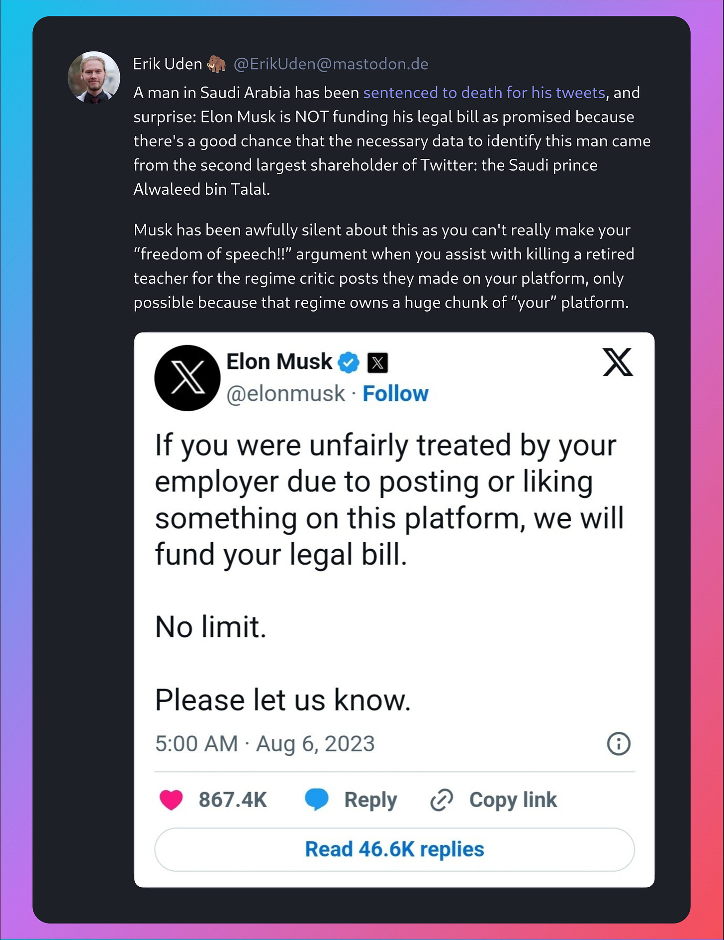 Elon Musk is NOT funding his legal bill as promised…