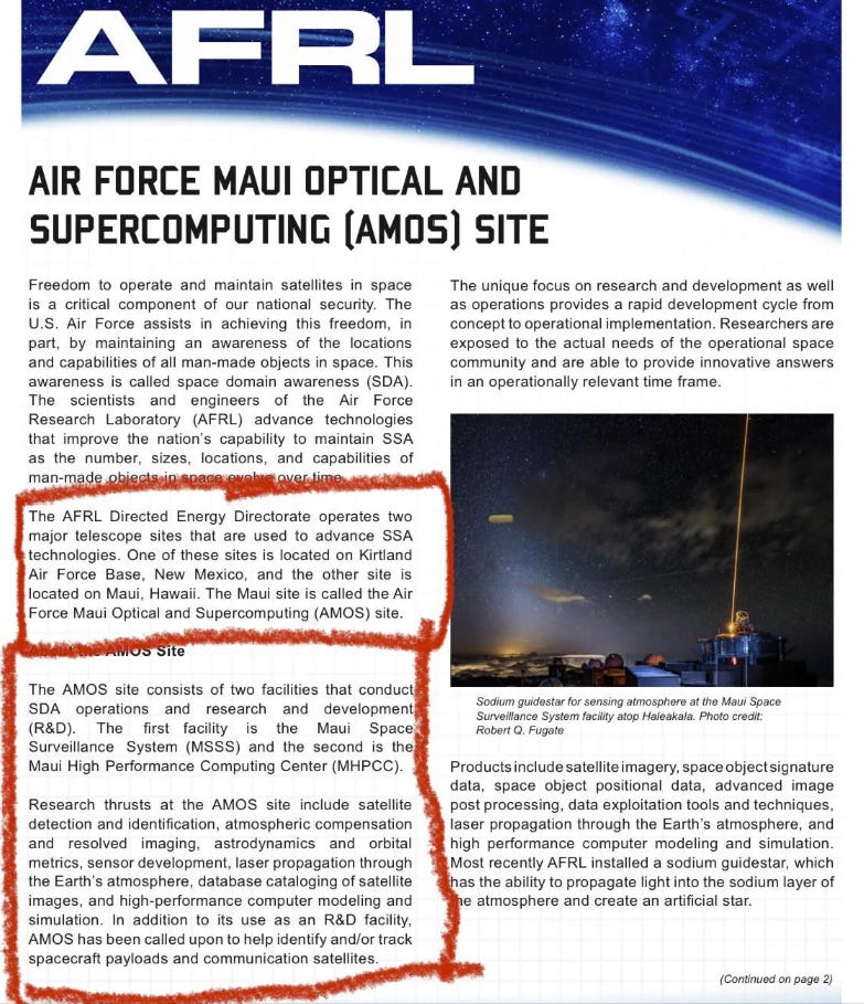 Air Force Research Laboratories located in Maui .. This mentions “Directed Energy Directorate…”