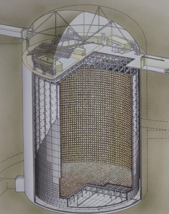 This underground "golden chamber" is lined with over 11,000 photomultiplier tubes, capturing flashes of light from neutrinos—mysterious particles that pass through everything, including us, by the trillions every second.