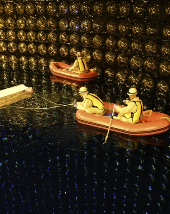 Deep beneath a mountain in Japan, Super-Kamiokande is a giant neutrino observatory containing 50,000 tons of ultra-pure water. 50,000 tons of water is about 12,000,000 gallons to you and me…
