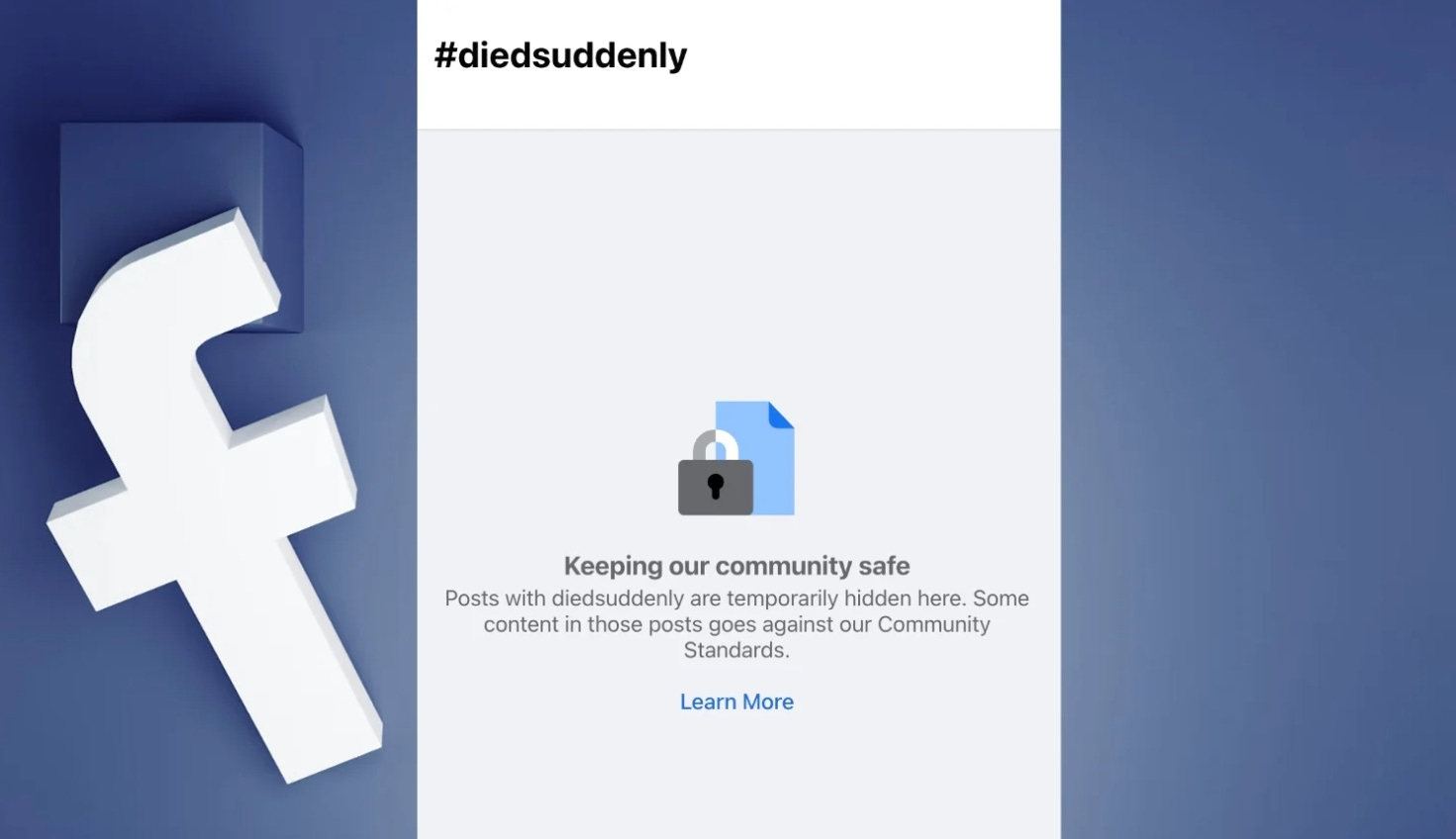 Facebook blocks #diedsuddenly hashtag…