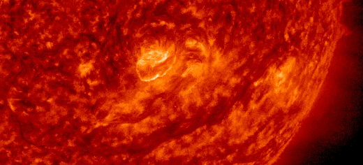 Active sunspot AR3079 is crackling with C-class solar flares. This movie from the Solar Dynamics Observatory shows one of the explosions on Aug. 13th happening not far from a dark magnetic filament: