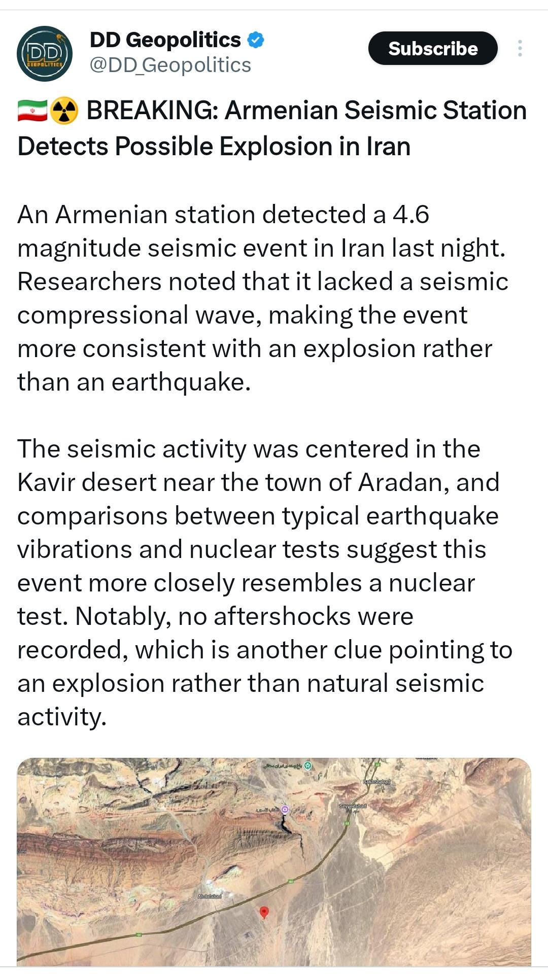 Btw, it would be a great achievement if anyone could detonate an A-bomb at 10km deep. And I do not believe great achievements to come out of current Iran.