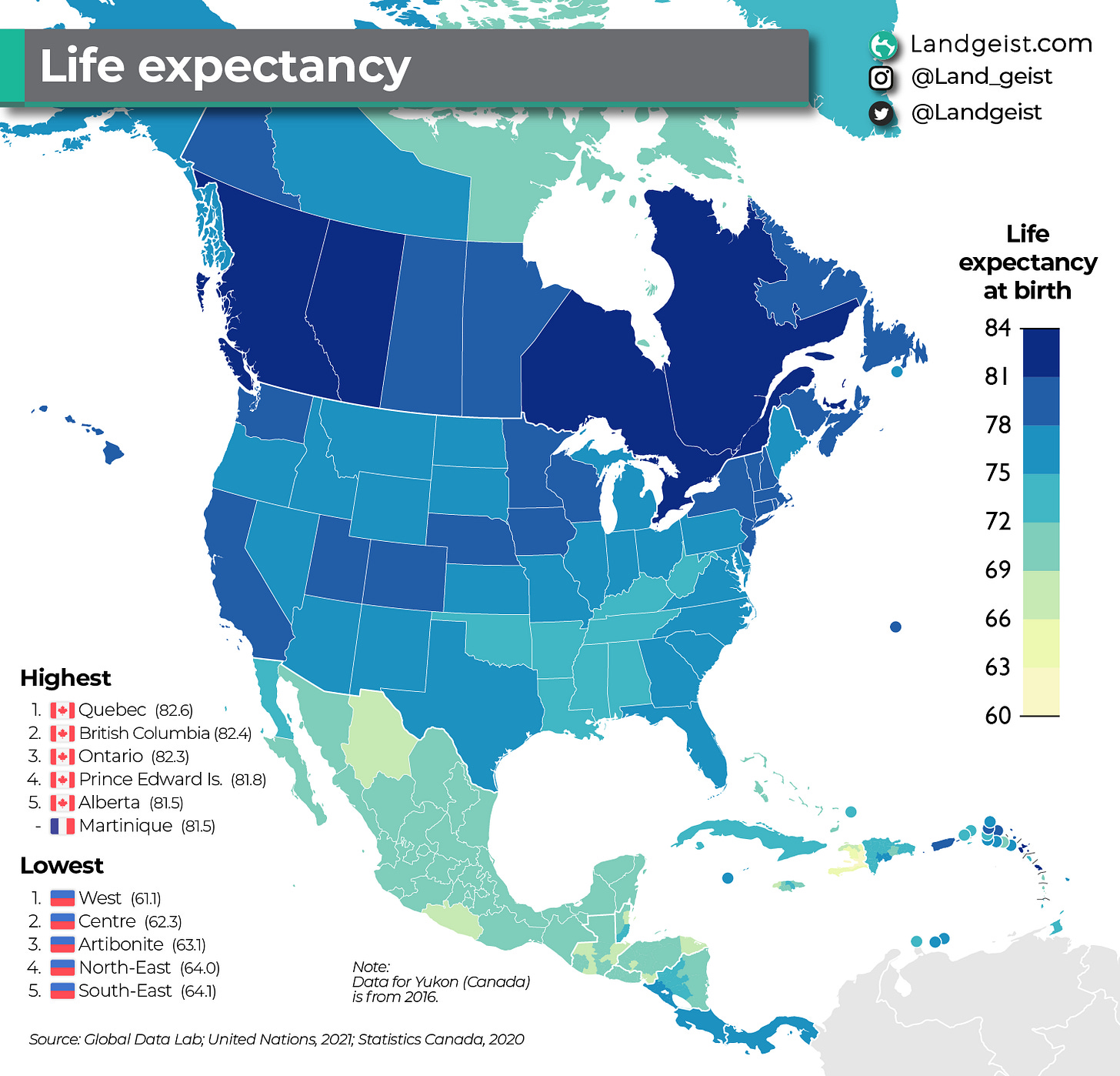 A poutine a day keeps the doctor away… Life expectancy in Northern America…