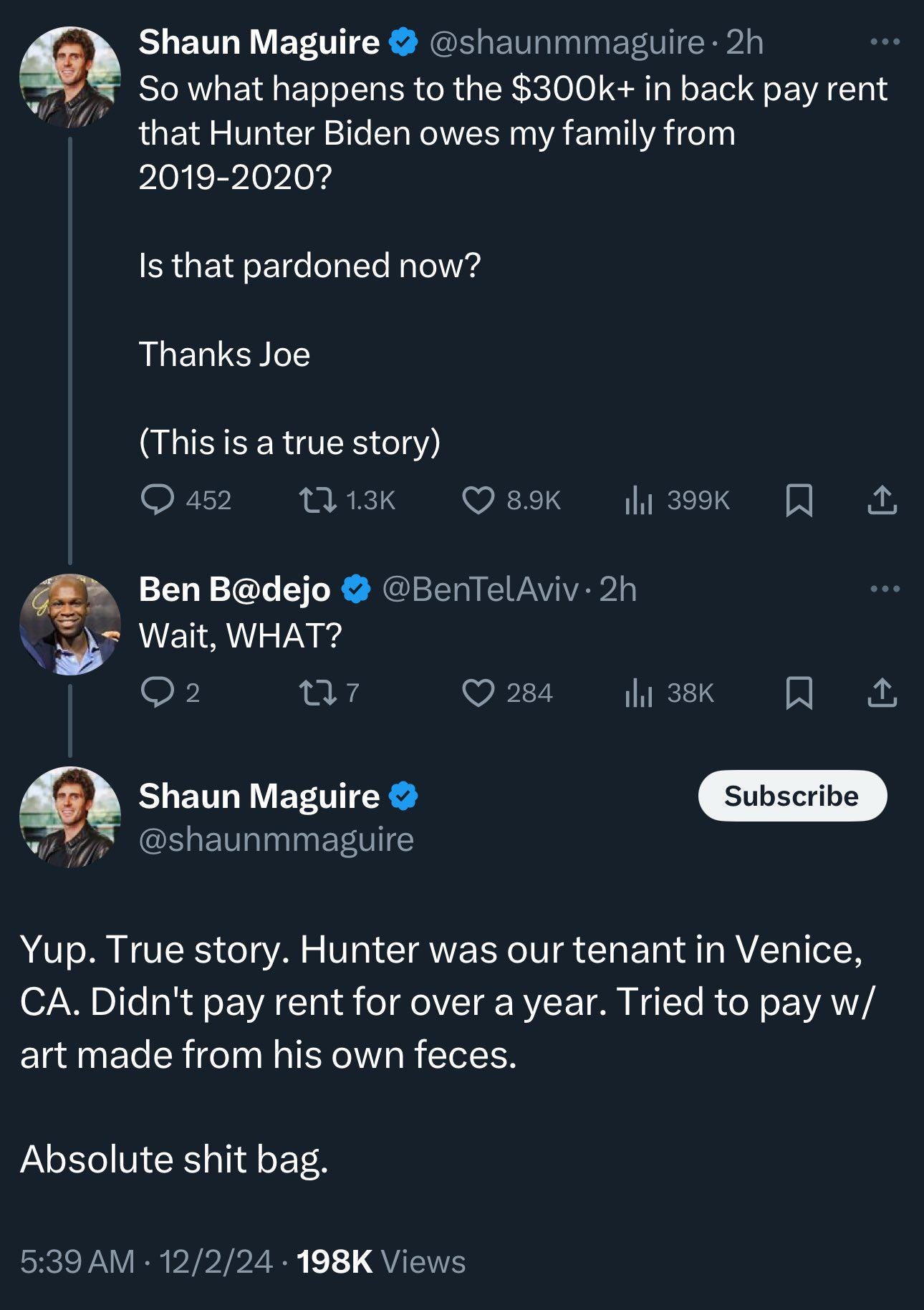 And according to this Tweet, Hunter Biden tried to make his rent payments with paintings he made out of his own poop…