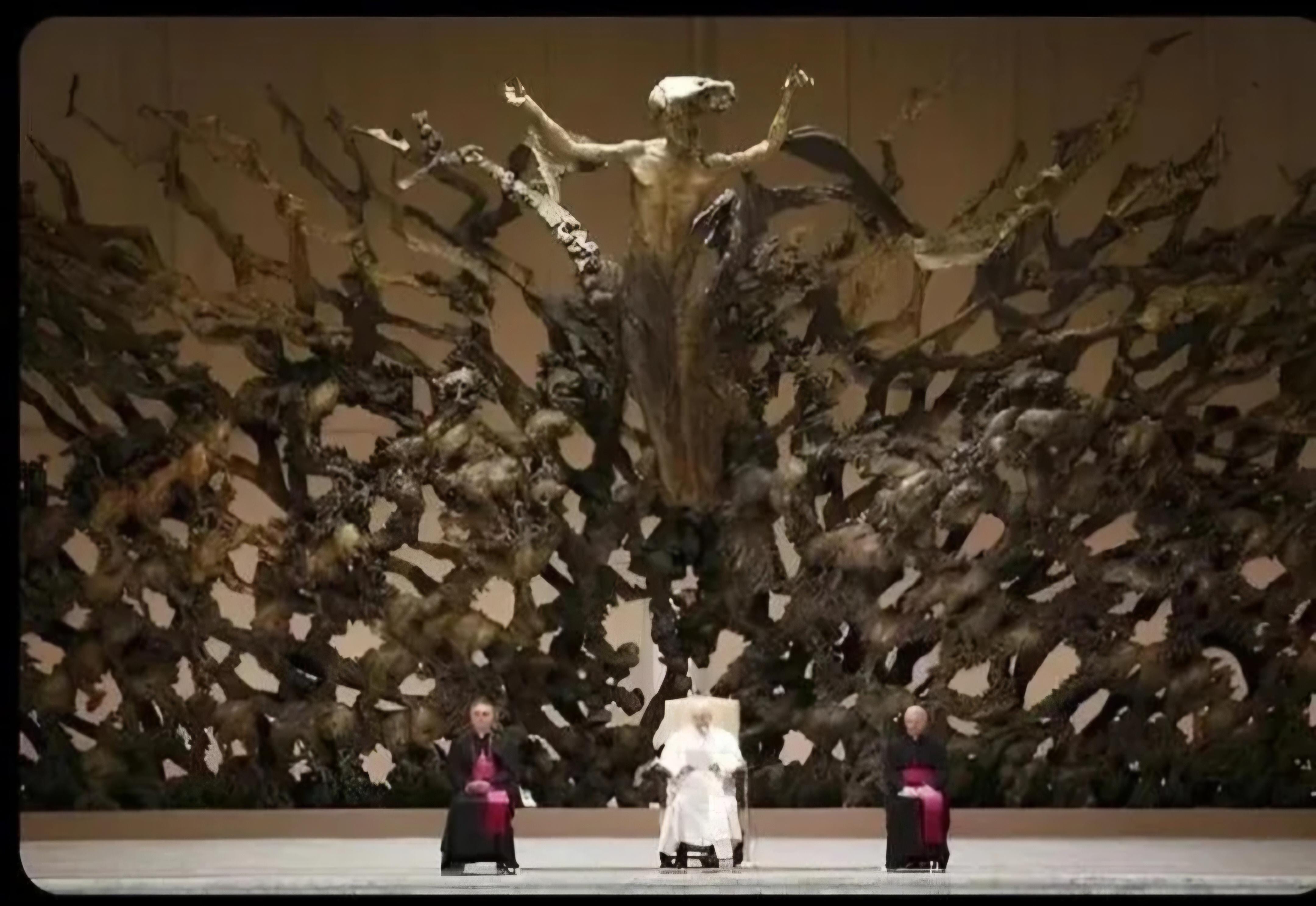 Does the giant 'Resurrection' sculpture in the Vatican come across as really damn sinister rather than holy to anyone else? Is it a case of evil things being hidden in plain sight?