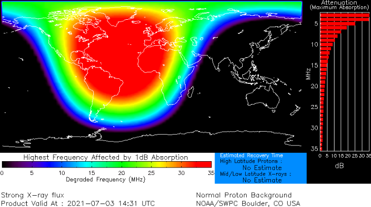 A shortwave radio blackout over the Atlantic Ocean resulted. Mariners, aviators, and amateur radio operators may have noticed unusual propagation effects below 30 MHz just after 1429 UT…
