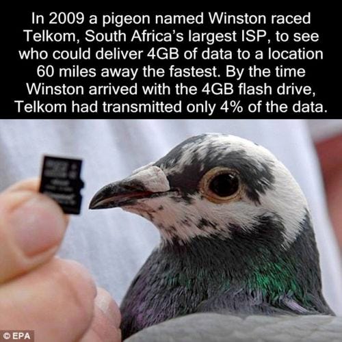 Back in 2010, Pigeons in South Africa were faster than the Internet…
