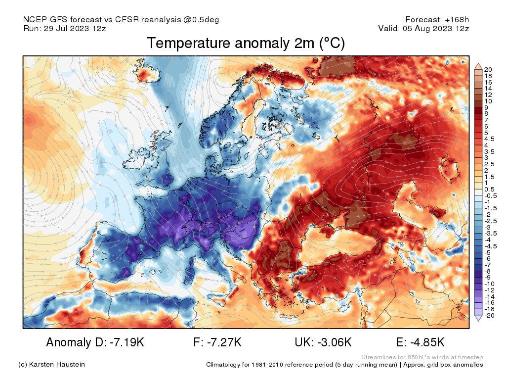 Weather forecast for next 7 days in Europe shows extreme anomalies, from an oven in the East to a freezer in the West…