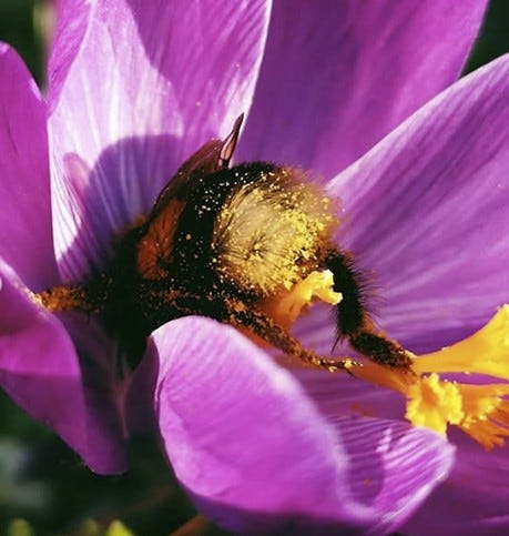 Flowers provide a cozy, enclosed space that traps heat, helping the bee maintain its body temperature (since bees can’t fly if they get too cold).