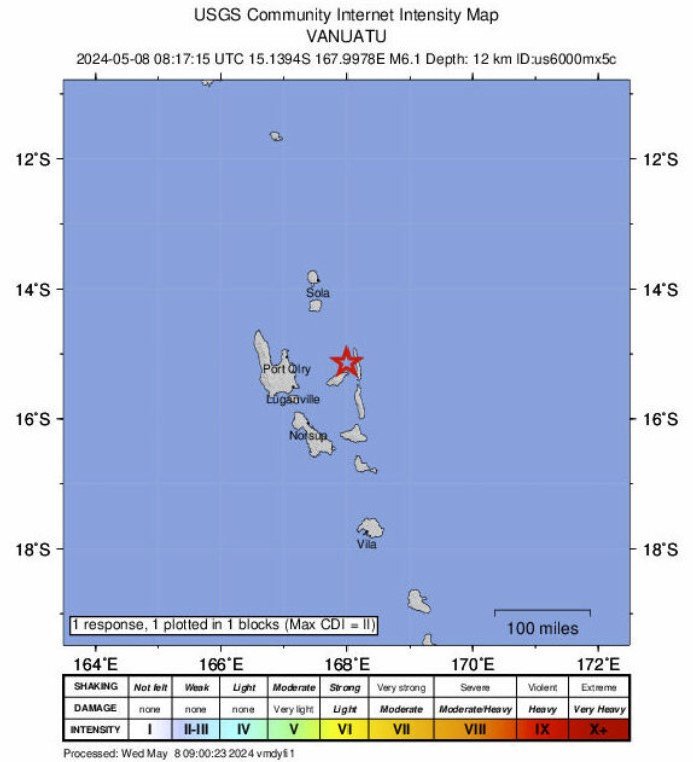 An earthquake with a magnitude of 6.1 hit the Vanuatu Islands at 08:17:18 GMT on Wednesday… Tremors were felt across many islands...