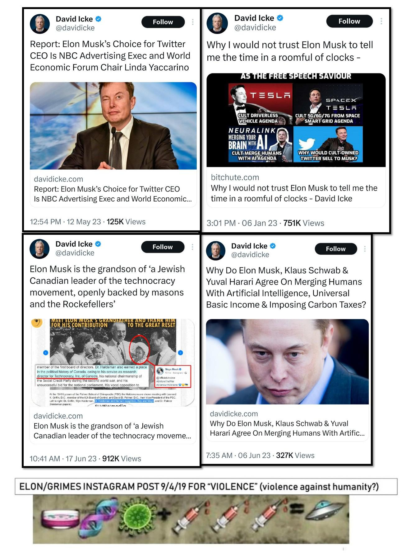 I'm in agreement regarding Elon Musk. I've written to this effect for a little while, namely the pro Climate Change, brain chip, slave factories, DOD Space X contracted/funded, 5G and 6G Spacelink technology encircling the globe, PayPal creating, Twitter (X - Masonic symbolism - future WeChat platform), Open AI founder....may not be in it for our best interests, shouldn't be a surprise.