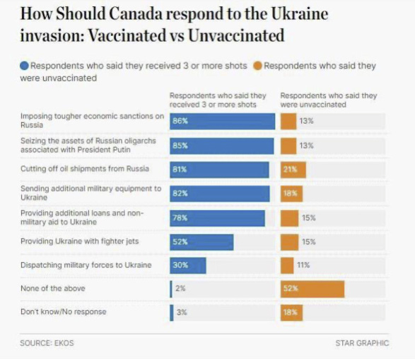 Interesting division on how Ukraine/Russia War is viewed vaccinated vs unvaccinated…