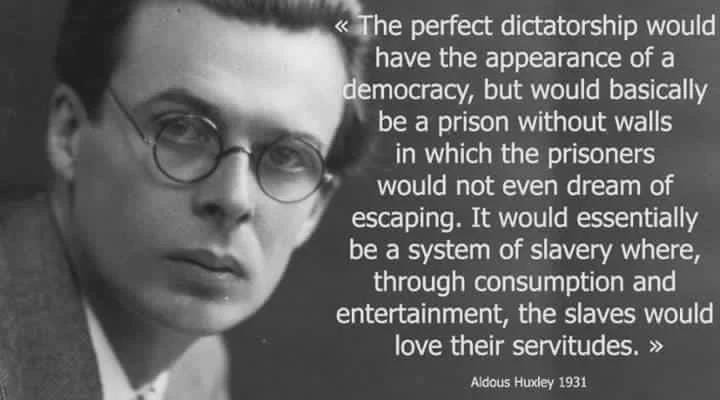 Btw, here’s what the visionary Aldous Huxley had to say on the Perfect DICTATORSHIP: The slaves would love their servitudes…