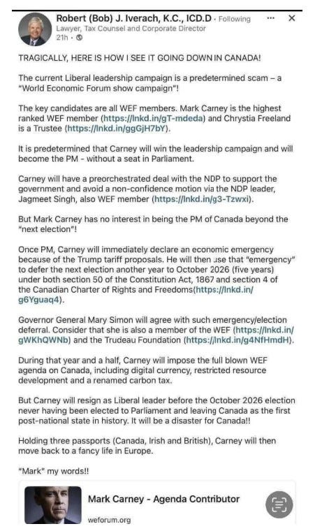 Absolutely shocking that Canada, the country I was born, can be in a situation where a globalist banker becomes Prime Minister with no election.