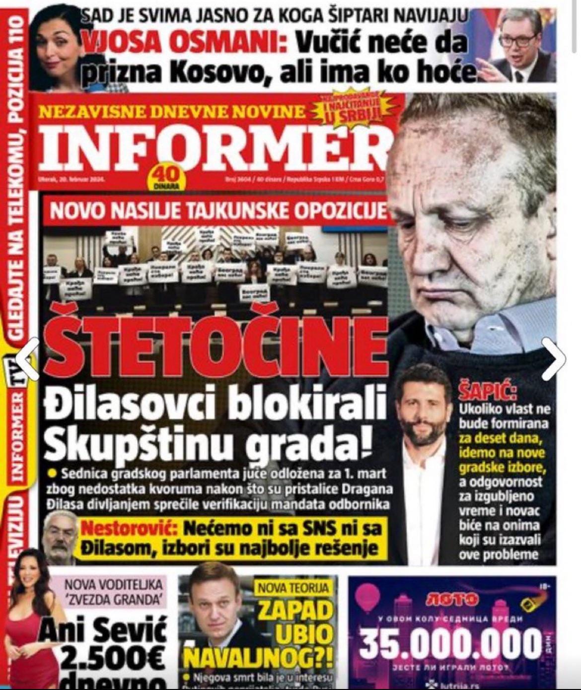 Serbias most circulated Tabloid with the headline: Did the West kill Alexei Navalny?