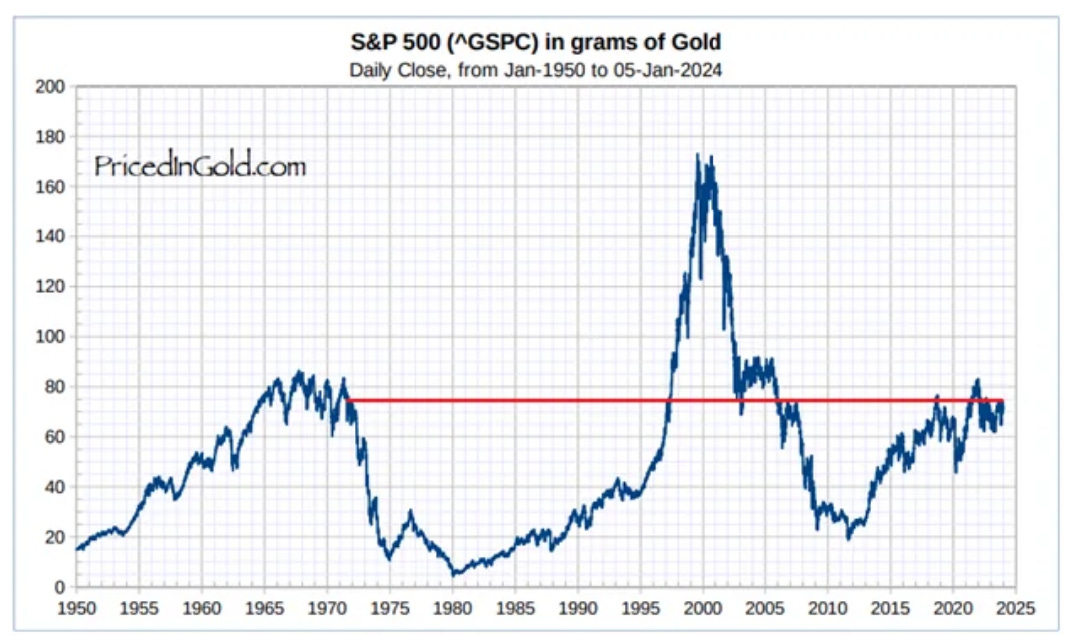 The Stock Market has generated no real returns over the last 50 years… If you traded a bar of gold in 1972 for a share in the S&P 500, over 50 years later your share would be worth that same bar of gold…