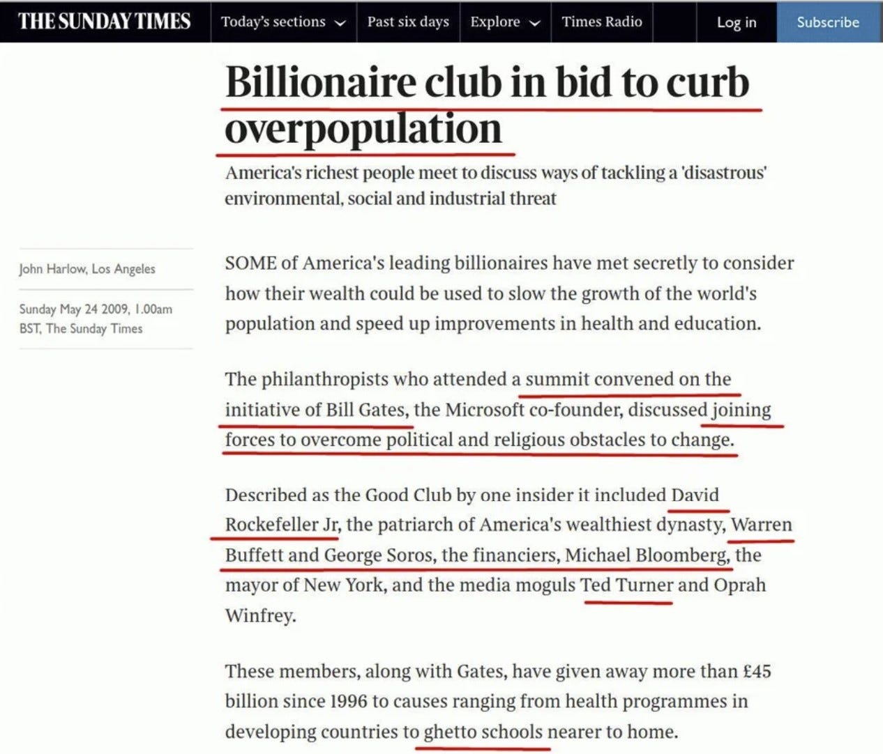 Someone dug up a 13-year-old article about world's richest men including our usual suspect Bill Gates secretly assembling to discuss "measures to curb overpopulation"…